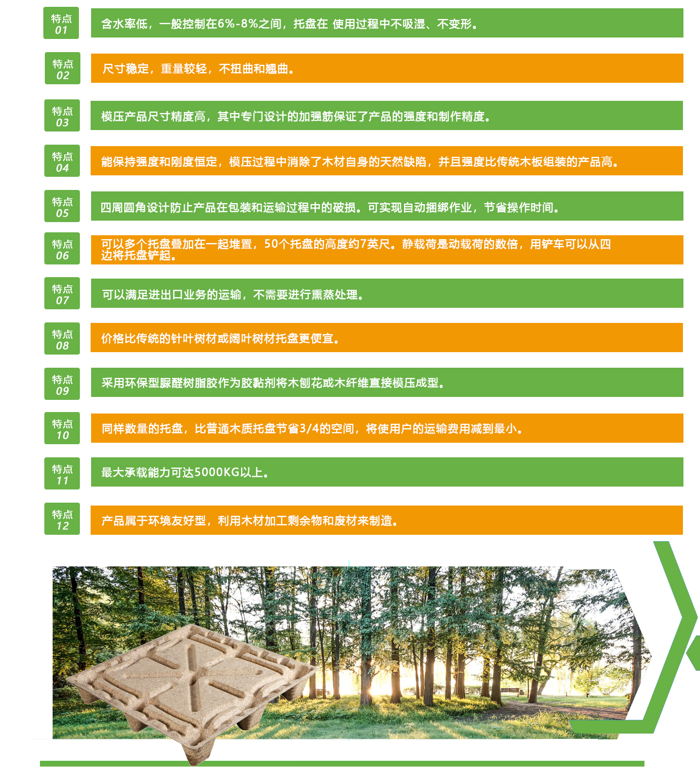 托盤用途十分廣泛,適合化工、電 氣、五金、建材、食品、家具和機械等 產品連同貨物一起包裝、運輸、周轉, 特別適合貨柜車(集裝箱車)??捎糜?機械化裝卸作業的火車、汽車、飛機和 輪船等。也可以用作碼頭、商場、倉庫 和貨物堆垛的墊板,是倉儲、出口、物 流的理想工具。